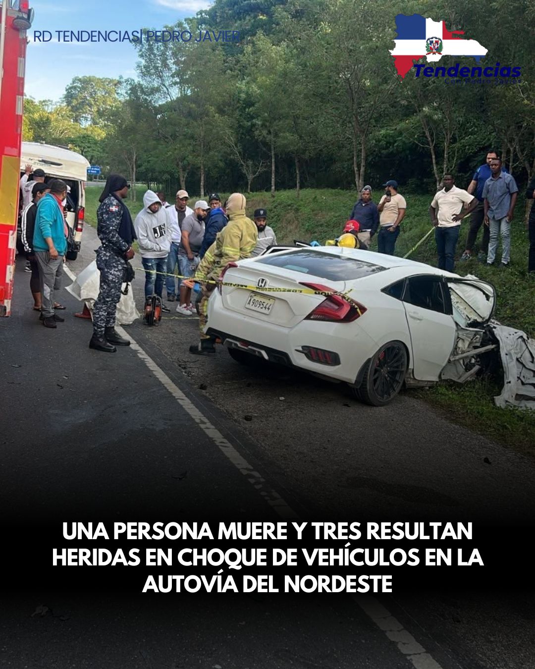 Monte Plata.– Un trágico accidente de tránsito ocurrido la mañana de este miércoles en el kilómetro 49 de la Autovía del Nordeste, próximo al Salto Socoa, dejó como resultado una persona fallecida y tres heridos, entre ellos un joven residente en el municipio turístico de Las Terrenas, cuyo estado de salud es delicado.