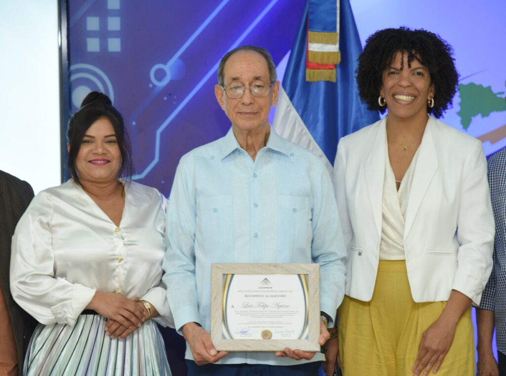 Al finalizar el conversatorio, la directiva de Adompretur entregó un reconocimiento especial a don Luis Felipe Aquino. Cristina Rosario, directora de Cultura y Turismo, calificó la intervención como una verdadera cátedra y leyó la placa que destaca su “invaluable y sostenida contribución al desarrollo de la industria turística del país, así como su compromiso firme con la formación de las nuevas generaciones”.