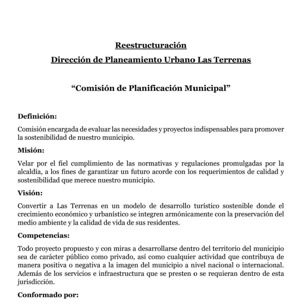 Por su parte, la Comisión de Planificación Municipal trabaja en la definición de un organigrama de competencias internas, que incluirá la creación de subdepartamentos especializados de planificación, con el fin de garantizar la correcta aplicación de las normativas, resoluciones y sanciones que se adopten en el marco de este proceso.